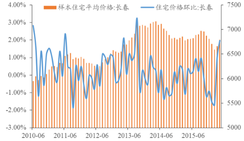 長春房價目前仍處于 2014 年以來的低點,2016 年以來在全國主要城市 中長期跌幅靠前。受新區(qū)獲批影響,長春樣本住宅價格在一季度末止跌, 回到年初價格,但距離復(fù)蘇仍有較長距離。