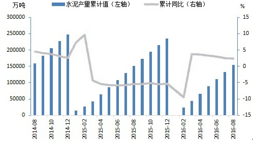 1-8月水泥產(chǎn)量增速持續(xù)放緩