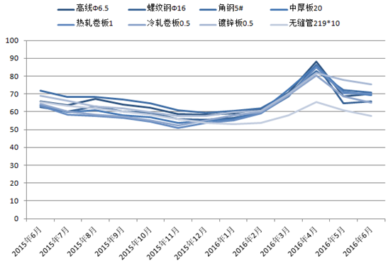 2015年6月末-2016年6月末鋼鐵價格指數情況