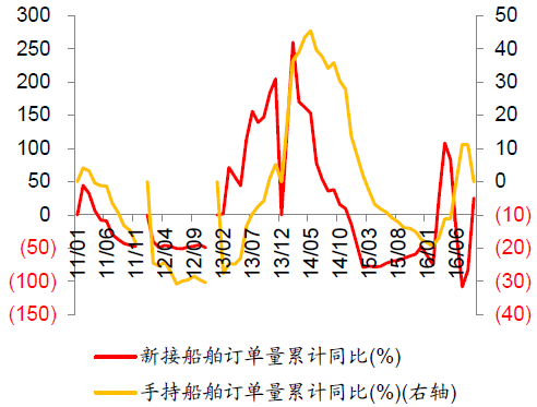 1-9 月份新接船舶訂單量累計(jì)增速大幅回升、手持船舶訂單量累計(jì)增速大幅下降