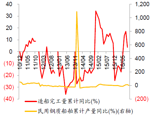 1-9月份造船完工量、民用鋼制船舶產(chǎn)量累計(jì)增速均大幅下降