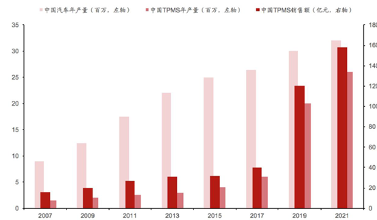 FMVSS138 與中國TPMS 標準的異同類別FMVSS138中國TPMS單輪胎報錯頻率20min10min行駛時檢測速率50-100km/h40-100km/h檢測精度±10kPa±3kPa使用壽命6 年/10 萬km6 年/10 萬km雖然安裝TPMS 對于主動安全防護確實存在很大好處,但基于成本考慮,車廠額外增加的動力不足,政策的強制性安裝驅動仍然是第一驅動力。我們可以明顯地發現2007 年TPMS 出貨量明顯增加,而從2012 年開始隨著歐盟、臺灣、韓國等陸續加入&汽車出貨量的提升均出現明顯上升。