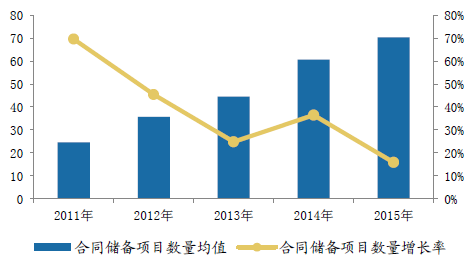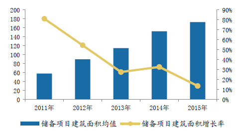 百強企業15年的合同儲備項目總數為14736個,均值為70.3個,同比增長15.82%;合同儲備項目總建筑面積均值為172.81萬平米,同比增長13.62。百強企業合同儲備規模連續四年增長,未來的項目發展和拓展有相當好的保障。