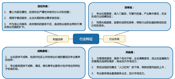 從社區物業行業現有的主體關系來分析,在物業管理市場中,基本矛盾有兩個:一個是服務主體的專業性較差,和被服務主體的體驗意識覺醒之間的矛盾,二是業務、開發商、物業服務企業和政府的信息不對稱的矛盾。這兩個矛盾是物業管理行業變革的內在動力。隨著行業標準化集約度的提升,物業管理規范以及服務價格標準的共識將會逐步達成。而社區物業逐步完善的外部驅動因素兩個,一是“互聯網+”的宏觀大勢,互聯網勢力加速向社區物業領域滲透;二是當房地產由增量市場轉變為存量市場,社區物業服務是盤活存量、增加客戶粘性、實現企業及品牌增值的關鍵。