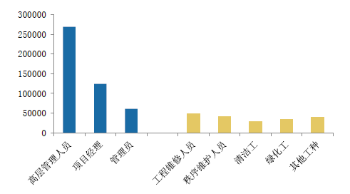 核心提示:截止到2015年末,全國物業管理面積為174.5億平米(物業管理面積根據物業管理協會數據以及歷年竣工面積計算),而根據2000年以來的已竣工項目面積分布來計算,住宅面積占比達到77%,辦公項目占比為2.64%,商業項目占比為10.39%,其截止到2015年末,全國物業管理面積為174.5億平米(物業管理面積根據物業管理協會數據以及歷年竣工面積計算),而根據2000年以來的已竣工項目面積分布來計算,住宅面積占比達到77%,辦公項目占比為2.64%,商業項目占比為10.39%,其他項目占比為9.27%。15年全國物業管理費用總規模約為6500億。11至15年全國商品房累計銷售面積為60億平米,預計未來3年新增物業管理面積將在36億平米左右,若按照15年的物業結構和費用測算,則總市場規模將會達到7800億。