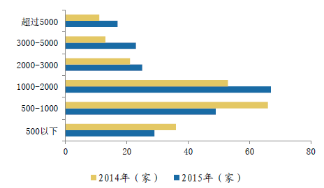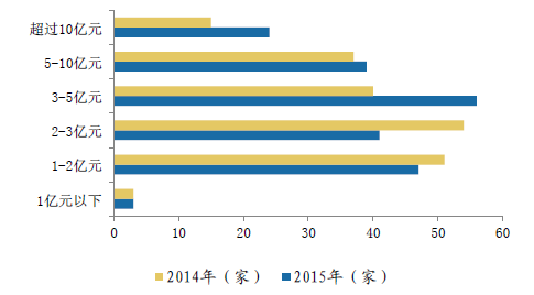 從企業盈利能力來看,收入超過10億的企業24家,同比增加8家,強者恒強趨勢顯著。收入3億以上的企業數量大幅增加,而數量在3億以下的百強企業數量有所減少,說明規模物業管理企業整體收入中位數在15年有所提升。