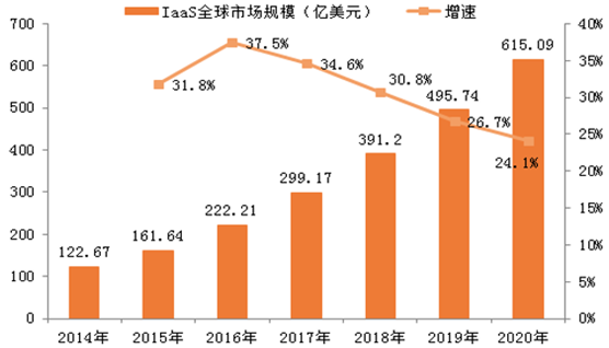 全球 IaaS 市場(chǎng)規(guī)模 2014-2020 年間 CAGR 為 30%