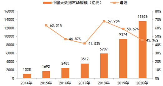 我國(guó)大數(shù)據(jù)產(chǎn)業(yè)市場(chǎng)規(guī)模 2014-2020 年間 CAGR 高達(dá) 53%