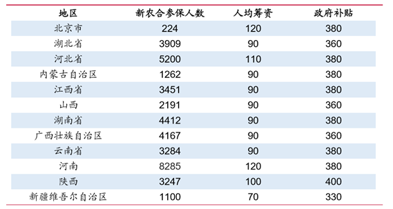 2015 年我國城鎮居民人均籌資水平為 566.8 元,新農合人均籌資水平為 490.3 元。合并進程中的省級地區,新農合參保的人數約為 4 億人,如果新農合醫保轉變為 城鎮居民醫保,籌資水平會有一定的提升。