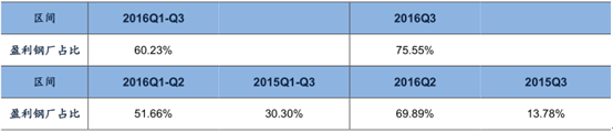 2016 年Q1-Q3 及 Q3 盈利鋼廠環比及同比