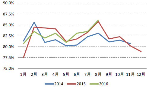 2014-2016年全國主要機場飛機起降架次(萬架次)