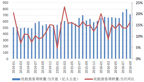 核心提示:2016年9 月份,民航旅客周轉量714.64 億人公里,同比增長16.30%。2014-2016年中國民航旅客周轉量(億人公里) 2014-2016年中國民航正班客座率(%) 2016年8月份,全國主要機場旅客吞吐量為9219.03萬2016年9 月份,民航旅客周轉量714.64 億人公里,同比增長16.30%。