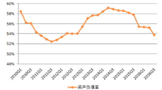 (二)在建工程/長期資產:行業整體環比微降,子行業下降為主在建工程占比微降。3季度末,行業整體在建工程占長期資產的比重為14.9%,環比2016年二季度微降,位于2010年以來次低水平。