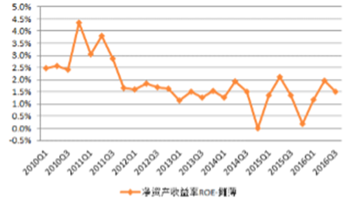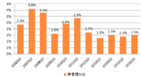 3季度基礎化工行業單季度ROE為1.51%,結束2015年4季度以來的改善趨勢,環比有所下降;剔除季節性因素,行業單季度ROE與歷史同期相比仍然偏低,在過去十年中僅高于2013-2015年同期水平。