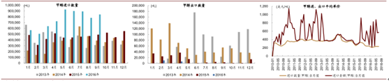 甲醇:漲 3.51%至 2,360 元/噸。期貨大漲,庫(kù)存較低而下游存在補(bǔ)貨需求。