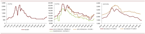 鈦精礦價(jià)格維持在 950 元/噸,金紅石型鈦白粉(攀鋼鈦業(yè))價(jià)格維持在 15,000 元/噸,金紅石型鈦白粉(佰利聯(lián))漲 6.94%至 15,400 元/噸。銳鈦型鈦白粉(南京鈦白)漲 2.59%至 11,900 元/噸。