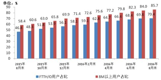2015-2016年8月光纖接入FTTH/O和8Mbps及以上