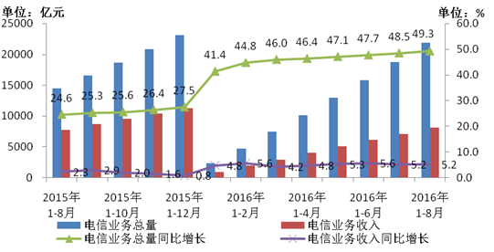 2016年8月份通信業經濟運行情況、用戶發展情況、業務使用情況及地區發展情況分析