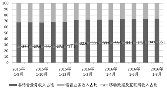 2015年-2106年8月話音、非話音收入占比情況