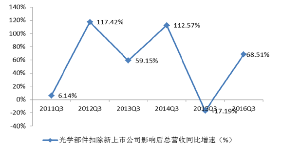 光學部件子類整體扣除新上市公司影響后行業整體營收增速