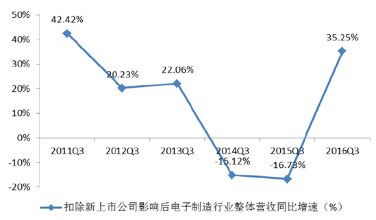 電子制造子行業整體扣除新上市公司影響后行業整體營收增速