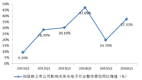光學光電子行業整體扣除新上市公司影響后行業整體營收增速