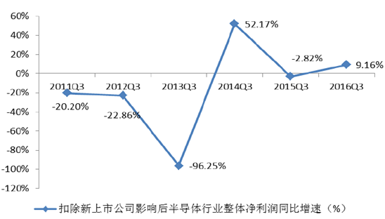 半導體子行業整體扣除新上市公司影響后行業整體凈利潤增速