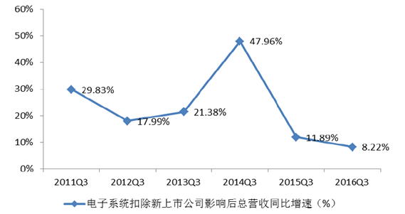 電子系統組裝子類整體扣除新上市公司影響后行業整體營收增速