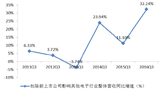 其他電子行業整體扣除新上市公司影響后行業整體營收增速