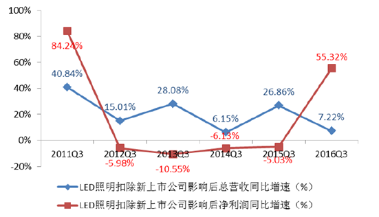 LED照明整體扣除新上市公司影響后行業整體營收及凈利潤增速