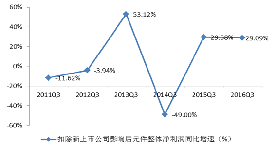 元件行業整體扣除新上市公司影響后行業整體凈利潤增速