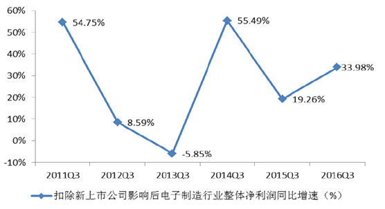 電子制造子行業整體扣除新上市公司影響后行業整體凈利潤增速