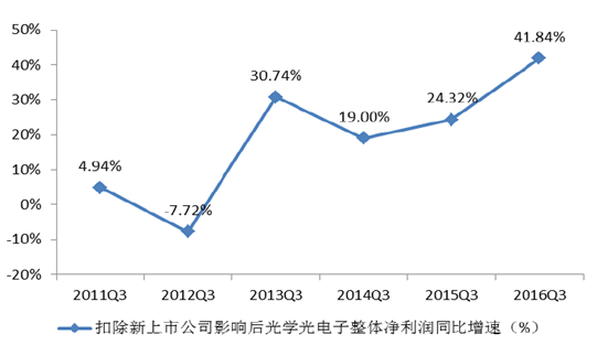光學光電子行業整體扣除新上市公司影響后行業整體凈利潤增速