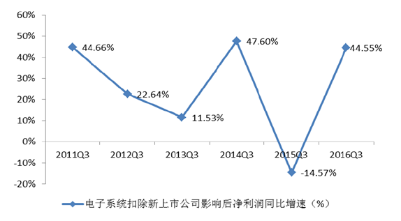 電子系統組裝子類整體扣除新上市公司影響后行業整體凈利潤增速