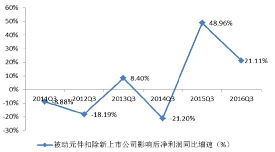 被動元件子類整體扣除新上市公司影響后行業整體凈利潤增速