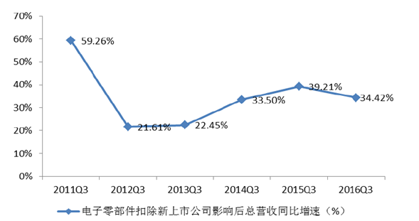 電子零部件子類整體扣除新上市公司影響后行業整體營收增速