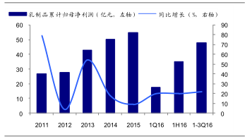 根據 2016 年三季報,前三季度乳制品 7 家上市公司共實現收入 685.4 億元,同比增長 0.4%;歸母凈利潤 47.8 億元,同比增長 22%。