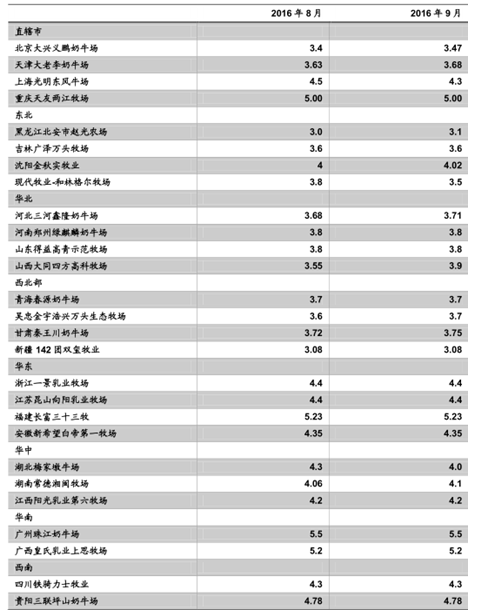 1、國內主產區生鮮乳價格