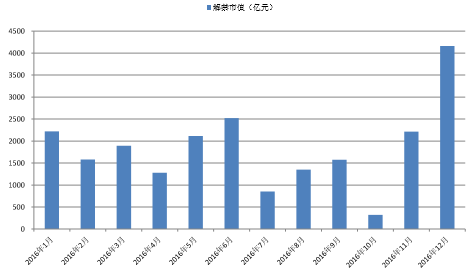 2016年A股各月股票解禁市值(億元)