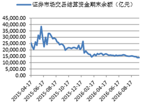 證券市場交易結算資金余額在三季度有所下降,截止9月23日余額為1.40萬億元,較7月1日余額1.58萬億元,下降0.18萬億。