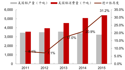 美國鋁消費對外依存度為 31%