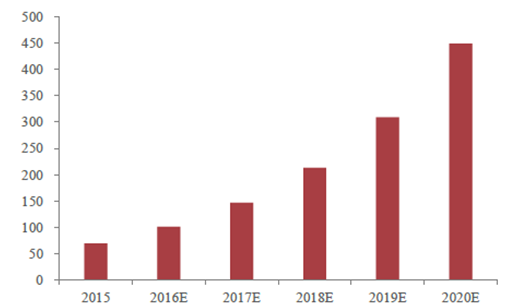 中國網絡劇市場規模預測(億元)
