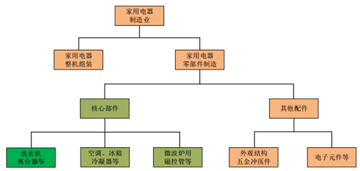 家用電器種類繁多、范圍較廣,按產品用途分類,家用電器一般包括清潔電器、制冷電器、廚衛電器、環境電器、電暖器具等;按行業慣例,家用電器又分為黑色家電和白色家電,黑色家電通常指視聽類產品,為人們提供娛樂、休閑,如彩電、音響等,白色家電則更加側重于減輕人們勞動強度、改善生活環境及提高生活質量,如洗衣機、空調等。