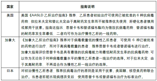 目前,在國外臨床上更廣泛使用的藥物為恩替卡韋和富馬酸替諾福韋酯。二者不僅治療效果較好(短期治療和長期治療均有效),且患者體內乙肝病毒發生耐藥突變的概率低(恩替卡韋5年累計耐藥率1.2%,替諾福韋酯的5年累計耐藥率為0)。各國治療乙肝的相關指南,如日本、美國、加拿大等國指南,均將恩替卡韋和富馬酸替諾福韋酯作為治療乙肝的一線用藥。