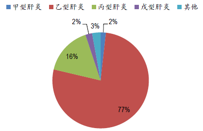 2013年不同類型病毒性肝炎占比