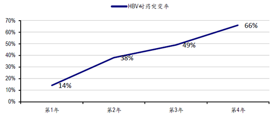 HBV耐藥突變率隨著拉米夫定治療時間的變化