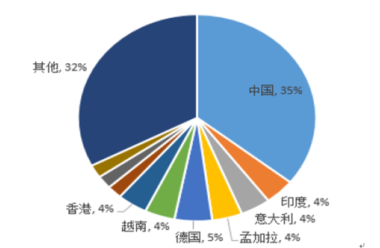 近年來我國紡織服裝出口以歐盟為主,其中英國、德國、法國、西班牙、意大利和荷蘭是中國對歐盟出口的主要市場,占歐盟市場的三分之二。今年以來,紡織品和服裝出口的同比增速在3 月份均實現了高幅的正增長,此后基本延續了下降走勢,截止今年9 月,紡織品服裝前三季度累計出口同比下跌5% 。