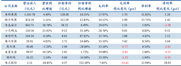 2016Q1-Q3白電企業(yè)業(yè)績情況
