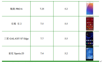 主要智能手機機身厚度和屏幕大小情況如下表所示: