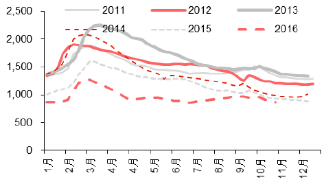 2016 年上半年行業高利潤,市場對供給側改革持謹慎態度。從2015 年11 月政府官員在公開發言中提及供給側改革以來,市場反應平淡;2016 年1 月以來,供給側改革成為高層在公開發言中的高頻詞,市場出現短暫行情,但因匯率風險增強及“熔斷”機制,市場波動較大、震蕩向下。春節以后,數據顯示需求側維穩,鋼價及利潤出現暴漲,帶動板塊向上,然而市場擔憂高利潤推動產能復產,進而利空利潤及去產能,同時鋼鐵信用利差不斷攀高,導致鋼鐵板塊波動較大。上半年,從我們與機構客戶交流的情況看,市場對供給側改革存有疑慮,一是產能去化涉及地方利益,包括GDP 考核、員工安置以及銀行貸款等,二是二季度以來行業利潤好轉,大量停產產能復產,去產能阻力增加。2016 年2 月底,粗鋼產能合計12.4 億噸,其中停產產能為1.71 億噸;3-6 月,在鋼價暴漲、利潤上行的刺激下,約有5400 萬噸停產產能復產。同時,數據顯示上半年鋼鐵去產能僅為1300 萬噸,占總目標的30%左右。